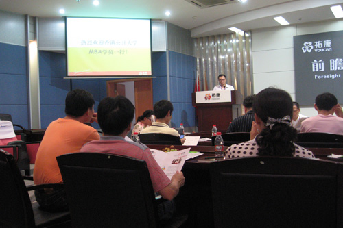 7月6日,在江干區(qū)副區(qū)長魏丹英和發(fā)展改革局局長陳凱同學(xué)的精心安排下,4月期杭州班學(xué)員前往祐康集團(tuán)參觀學(xué)習(xí)。在集團(tuán)展示廳,祐康工作人員向大家一一介紹了祐康的發(fā)展史及它的產(chǎn)品。同時,學(xué)員們和祐康的兩位負(fù)責(zé)人也在會議廳里就祐康電子商務(wù)發(fā)展情況進(jìn)行了具體的交流。 近兩小時的參觀結(jié)束后,學(xué)員們前往華辰銀座酒店繼續(xù)電子商務(wù)課程學(xué)習(xí)。任課老師曹增節(jié)教授也就祐康實際結(jié)合書本相關(guān)知識與學(xué)員們做了相應(yīng)的學(xué)習(xí)引導(dǎo)與交流溝通。