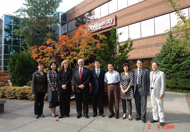 9月25日至10月2日,以章一文為團(tuán)長由浙江省委組織部、省財(cái)政廳、省經(jīng)貿(mào)委及我校組成的浙江省培訓(xùn)代表團(tuán)考察了美國。 代表團(tuán)在美國期間考察了美國肯尼迪大學(xué)、美國西雅圖城市大學(xué)等大學(xué)及有關(guān)企業(yè)并與他們作了交流。在美期間何櫟校長與美國肯尼迪大學(xué)校長STEVEN A .STARGARDTER 簽訂了合作開展工商管理人員培訓(xùn)協(xié)議書,并與美國西雅圖大學(xué)談妥了有關(guān)合作意向。