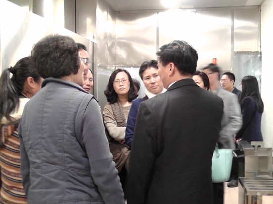 秋季班學(xué)員在徐金強(qiáng)校友的帶領(lǐng)下參觀了現(xiàn)代化的浙大食堂,機(jī)器化的做飯、洗碗、供應(yīng)、飯后碗筷回收等一系列工作流程,并聽取了徐金強(qiáng)和工作人員的介紹。新加工出來的香噴噴的米飯、可以做出花樣包子的全自動(dòng)包子機(jī)、整齊劃一的洗碗機(jī)等都給學(xué)員們流下了很深刻的印象。憑借著高度機(jī)械化的設(shè)備和高素質(zhì)的服務(wù)人員,浙大紫金港校區(qū)后勤食堂以僅僅450名員工為學(xué)校4萬(wàn)多學(xué)生和教職員工同時(shí)提供優(yōu)質(zhì)的餐飲服務(wù)。
